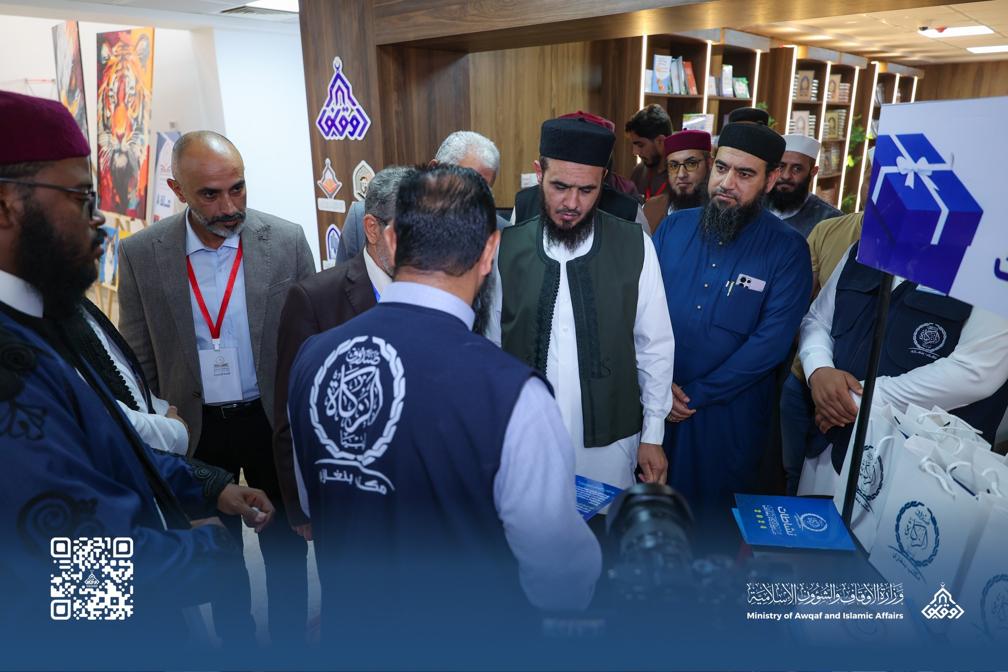 مُشيدًا بدوره في ترسيخ القيم الدينية والفكرية الهادفة، معالي وزير الأوقاف يزور معرض بنغازي الدولي للكتاب في دورته الرابعة بنغازي: 13/جمادى الأولى /1447هـ الموافق 2025/11/05م زارَ معالي وزير الأوقاف والشؤون الإسلامية بالحكومة الليبية السيد/ عاطف عبد الواحد العَبيدي، صباح اليوم الأربعاء ، معرض بنغازي الدولي للكتاب في دورته الرابعة، الذي تستضيفه دار الكتب الوطنية بمدينة بنغازي - حرسها الله-، تحت شعار "الإعمار والسلام". وكان في استقباله كل من: - اللواء بشير الناجح رئيس اللجنة التحضيرية للمعرض. - السيد/ أنور الشويهدي المنسق العام للمعرض. - العميد/ عبد الله الأسود رئيس لجنة المتابعة. - الرائد/ إبراهيم الفقهي رئيس اللجنة الإعلامية. - السيد/ ياسر حمودة رئيس لجنة الناشرين. - السيد/ محمد الجروشي، النقيب العام لاتحاد الناشرين الليبيين. وتجوّل معالي الوزير في الجناح الخاص بوزارة الأوقاف والشؤون الإسلامية ومايحويه من أحدث إصداراتها ومطبوعاتها العلمية والتوعوية التي تعكس التزامها بتعزيز الوعي الديني والثقافي ونشر رسالة الإسلام المعتدل، بما تقدمه من محتوى معرفي رصين يخدم تطلعات المجتمع. كما اطّلع معاليه على بقية أجنحة المعرض، و إصدارات دور النشر المحلية والعربية، وما يُقدَّم من مؤلفات علمية وفكرية تسهم في إثراء المشهد الثقافي، مشيدًا بجهود المنظّمين في دعم الحركة الفكرية والمعرفية، وتعزيز حضور الكتاب في المجتمع. هذا وأكد معاليه أن هذه التظاهرات الثقافية تمثّل فرصة مهمّة لترسيخ القيم الدينية والفكرية الهادفة، وتشجيع القراءة والاطّلاع، بما يواكب رسالة وزارة الأوقاف في نشر الوعي والمعرفة الوسطية، و تفتح آفاقاً معرفية جديدة للزوار عبر تعزيز الثقافة الإسلامية، مشيرًا إلى أن الوزارة تُولي عناية خاصة بكل ما يخدم نشر الوعي الديني، ويعزّز دور الكلمة الهادفة في بناء الإنسان والمجتمع. يشار إلى أن معرض بنغازي الدولي للكتاب في دورته الرابعة يُقام برعاية كريمة من القائد العام للقوات المسلحة المشير خليفة حفتر، وبإشراف وزارة الثقافة بالحكومة الليبية، وإدارة التوجيه المعنوي بالقيادة العامة للقوات المسلحة، وبالتعاون مع بلدية بنغازي واتحاد الناشرين الليبيين، و بمشاركة أكثر من (100) دار نشر محلية ودولية، تمثل( 12) دولة حول العالم.